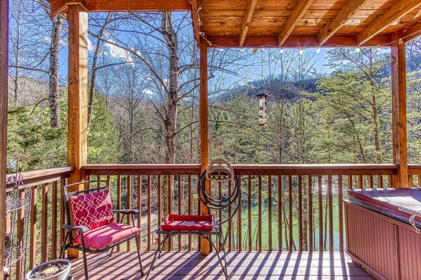 This cheerful property is a two bedroom two and a half bath that sleeps 10 with plenty of extra space. It is about 15 minutes from Pigeon Forge and 25 from Gatlinburg. You will have an easy drive, not hitting gravel until you are on the road just before the cabin. You will be pulled in by all the joy the cabin exudes, with its stunning views outside, and the warm Christmas décor inside.