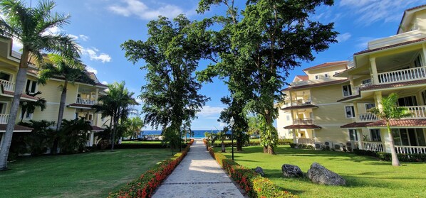 This condo offers stunning ocean views and breathtaking sunsets. It is located in a prestigious oceanfront complex with tropical gardens close to fabulous beaches. The apartment is nestled away from the crowds, just a two-minute walk to restaurants and a ten-minute walk to the town center. Guests enjoy a direct view of the ocean from the private balcony.