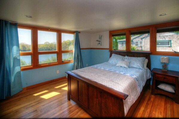 My husband, daughter, and I enjoyed our stay very much. The view from the back deck was definitely the highlight. We all loved reading and drinking coffee there in the mornings. The spacious and light-filled interior, mini split (AC) and fans in every room, washer/dryer, WiFi, and the mostly well-stocked kitchen were all delights as well. The turn-off from Rt.1 into the driveway is harrowing at first! But we got used to it, and the pond view/boat access compensated. Suggestions: bring pop-up towel racks for bath and beach towels, a cork screw, and bug spray.