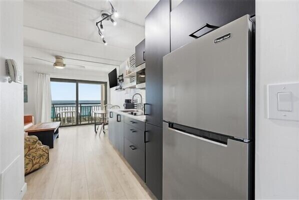The good, the view was perfect, the bed was comfortable and the shower head was nice…the bad…constant bugs crawling on kitchen counter and other places. They sprayed after I was there for 4 days but it didn’t help. The overall place was shabby, rust throughout, peeling paint, floor boarder around all walls was old and dirty. There was no broom or any type of vacuum which is odd seeing your bringing sand in everyday from the beach. I asked the front desk if they could drop one off and they said yes but it never showed. One of the bath cabinet doors was broken. Could use a door stop for very heavy front door when carrying luggage in and out. The overall place is very small but that wouldn’t be so bad if it didn’t have all the other issues.