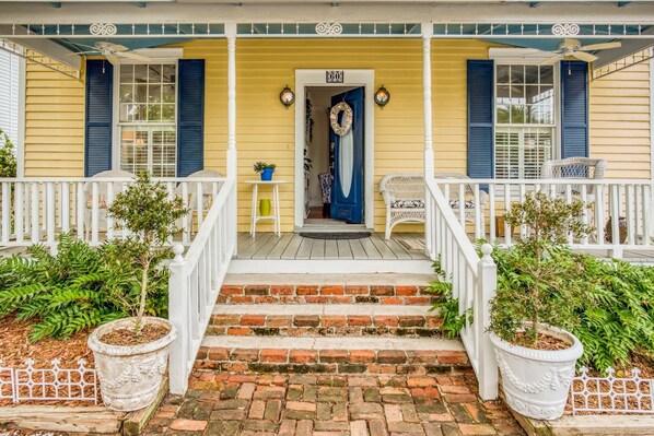 Enjoy great proximity to all that St. Augustine has to offer while staying in this charming 1900's Water Street Cottage! Located 20 feet to the Matanzas River and within walking distance of the fort and all the downtown attractions, this home is cheerfully bright, and thoughtfully decorated. The Little Yellow Cottage has a relaxing layout with one king bedroom, 1 bedroom with a twin day bed, full kitchen, cheerful dining, cozy living space, large front porch, and fenced courtyard in the back. You will be enamored by the historic detail in the master bathroom and throughout the entire home! Every detail has been thought of! Enjoy the restored original hardwood floors, clean and cozy furniture, and retro/historic details. Cook "at home" in the fully stocked kitchen, and rest well with crisp white linens and soft bath towels which are provided for you. A morning cup of coffee in the private courtyard will taste great just before heading out to explore. Enjoy a glass of wine on the front porch in the evenings after taking a walk in this beautiful neighborhood or along the waterfront.