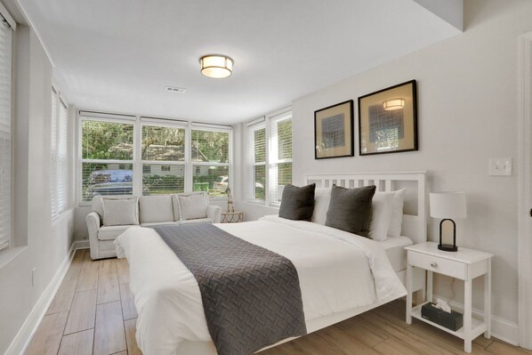 The room was very clean, and as pictured. The yard was lovely for our dog. The home is close to the Fountain of Youth and the Hop On Hop Off Trolley (we walked).After a long day walking the couch in front of the TV has no where to put your feet up and rest. The water heater is small and runs out before one short shower so hurry. Upstairs tenants are very foot heavy sounds like thunder and bowling balls dropping. It was bad or I would not have mentioned it. Overall we did enjoy our stay until the upstairs folk arrived on Sunday.