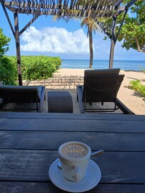 When we arrived, we booked a beachfront bungalow. From the pictures on their website, we thought we were getting a room on the beach. You know, the ones where you literally walk out the door and your feet are in the sand and the ocean is steps away. Not the case. We were facing the ocean and had a full view of the ocean, but it was not the room we booked. With that said, the room was decent, rustic would be the best word to explain the room. The major issue with the room was the bugs and the cleaning staff never cleaned them up. We purposefully left the dead ants and mosquitos on the bathroom sink to see if they would get cleaned up but they never did. Staff literally swept the floors (inside and on the patio) and made the bed; thats it. We had a fridge but never received and drinks for said fridge. The couple we went with requested a few cokes and Ginger Ales and was told they could not take them from the bar and would have to purchase soft drinks from the gift shop. Now come on, this is an all inclusuve resort and we have to purchase non alcoholic sodas from the gift shop???? First time for this girl!