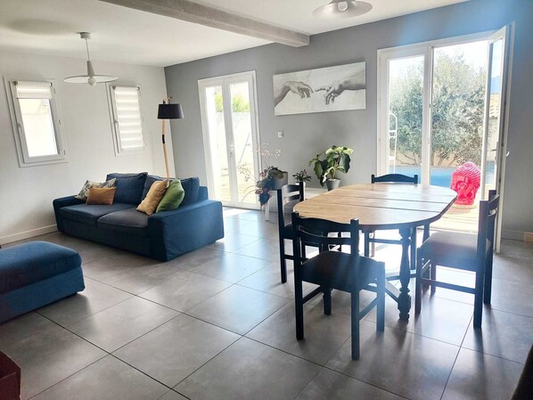 Loma-asunto, jossa on yksityinen uima-allas ja keittiö