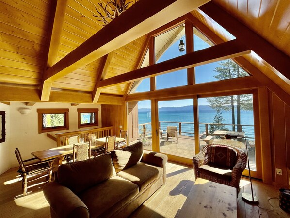 Lakefront talo, josta on upeat näkymät Tahoe-järvelle. Sijaitsee Rubicon-lahdella (Tahoe-järven länsirannalla). Yksityinen valkoinen hiekkaranta (järven tasosta riippuen), oma poiju, kajakki ja HOA-laituri. Tämä kiinteistö on harvoin vuokrattavissa markkinoilla.