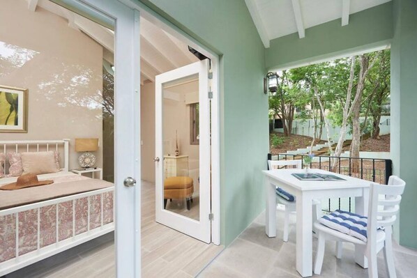 You will have also access to a private pool and kitchen in Casa Leona. Besides that, a shared outside pool area with tanning chairs and pool towels available. You can relax on our decks and garden area. As well as parking spaces provided. We offer many amenities as well as BBQ, bikes and surfboards free of charge!