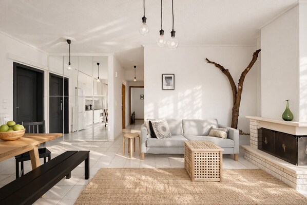 A newly renovated and refurbished 3-bedroom apartment with large balconies in the relaxed coastal suburb of Thessaloniki, Peraia. Surrounded by a plethora of cool cafes, cosy restaurants, supermarkets, bakeries, beach bars and hipster taverns, all within walking distance. The beach is only 5min walk from the Suite, while Thessaloniki International Airport, Regency Casino, Mediterranean Cosmos (shopping mall), Waterland (waterpark) and Magic Park (amusement park) are all no more than 10 km away. During summer time there is a water taxi service from Peraia to the city centre of Thessaloniki. Those who seek a slower pace will appreciate the relaxed vibes of this laid back neighborhood as it offers urban convenience in a more tranquil and quiet setting.
