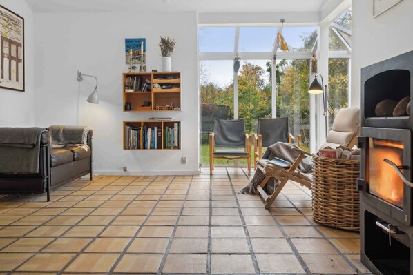 Loma-asunto, jossa on keittiö ja takka