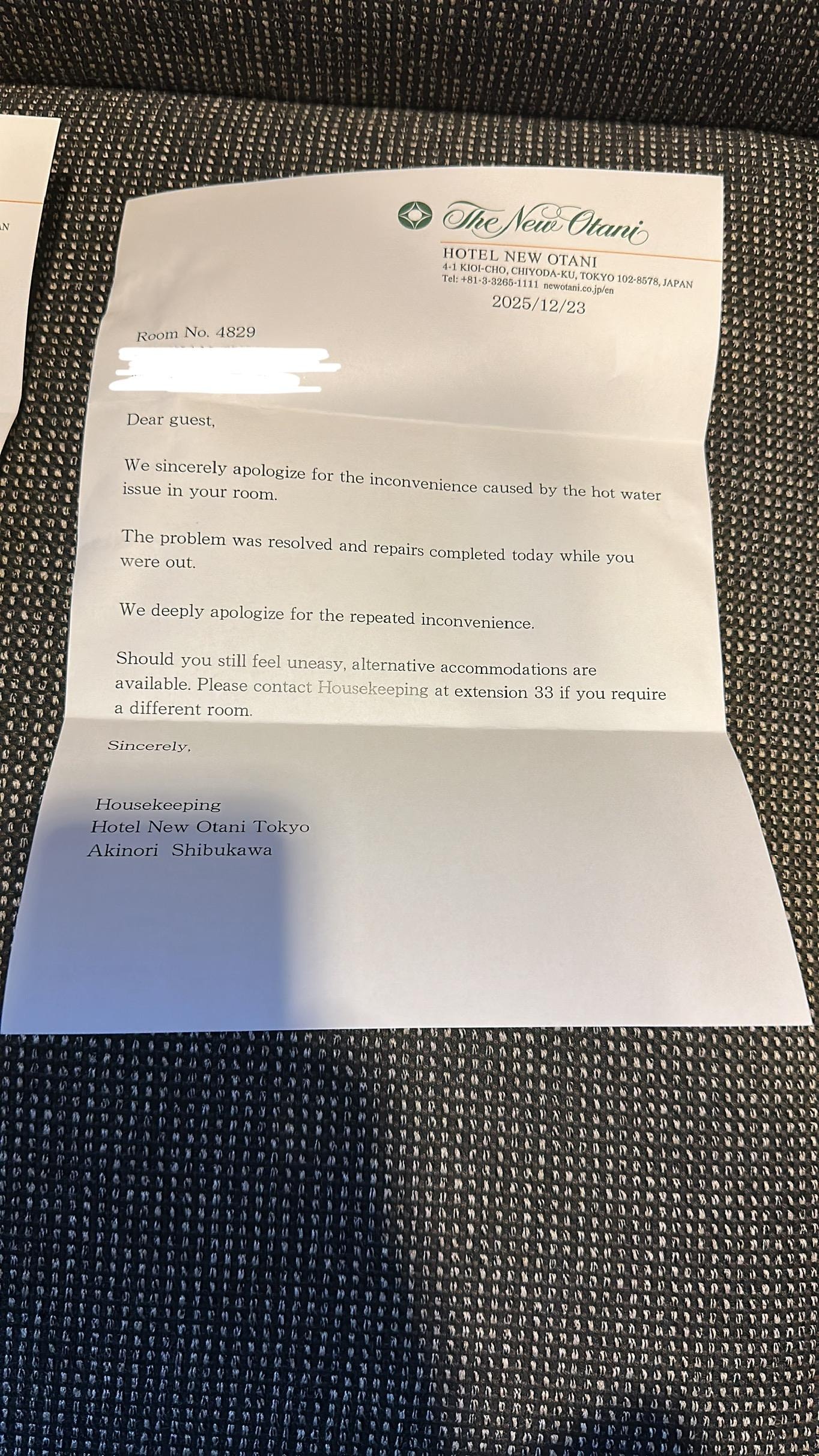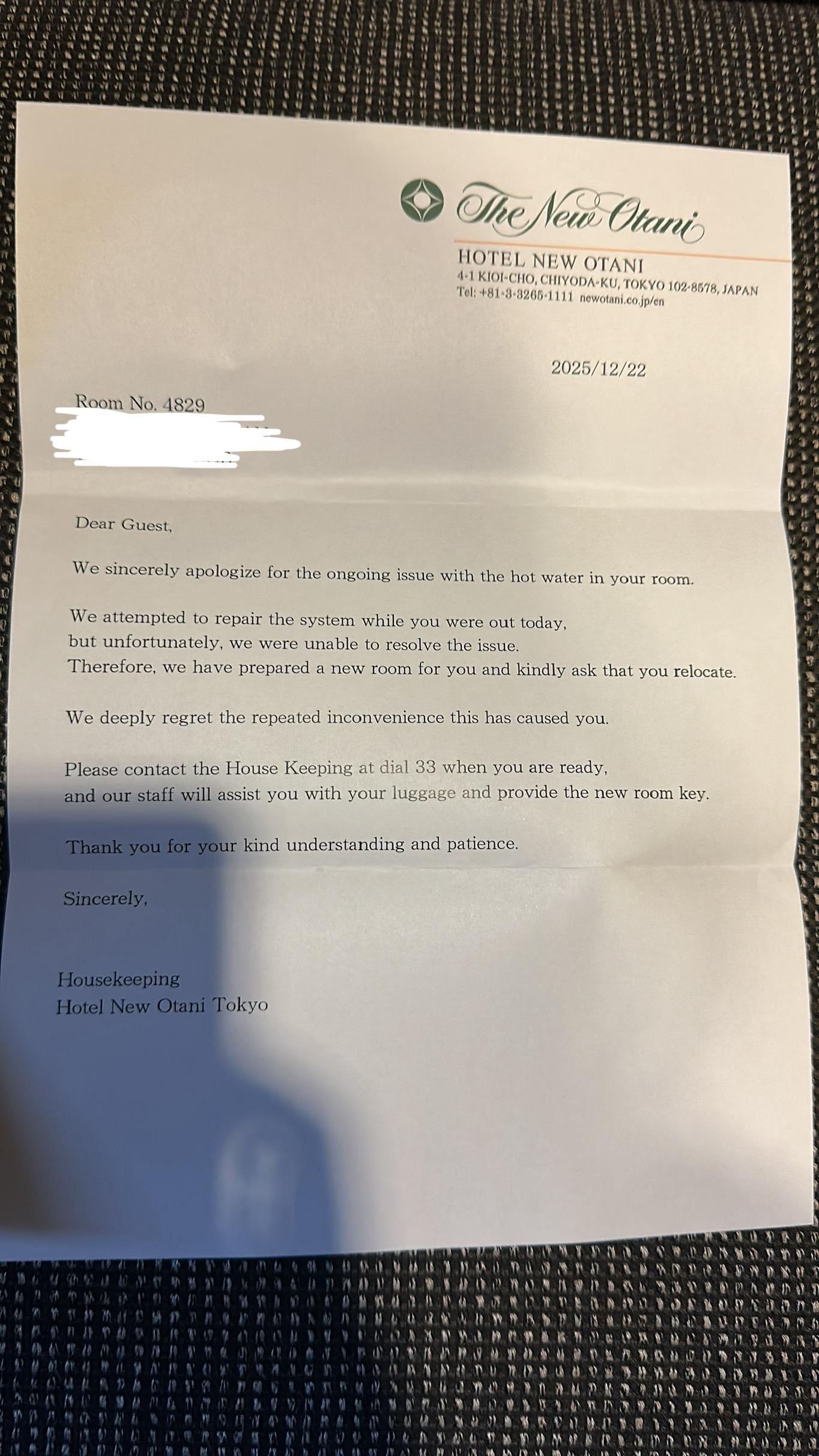 What made this unacceptable was the hotel repeatedly claiming the issue was fixed when it clearly was not. I trusted the staff twice and was misled twice, including discovering there was still no hot water after I had already undressed to shower, in winter temperatures.
