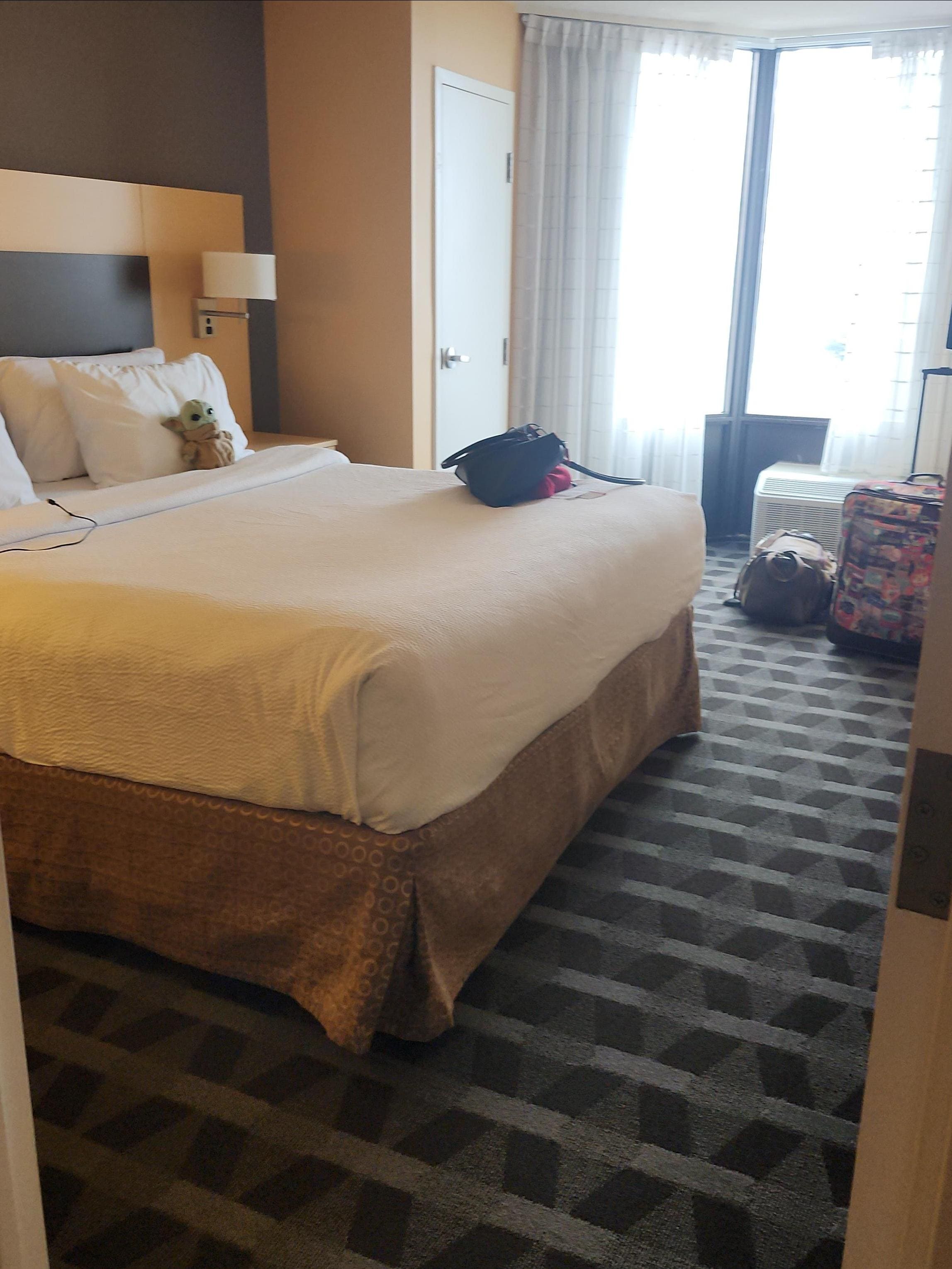 Horrible hotel. Never again. Rooms are spacious and offer good amenities but the hotel staff is awful, the place is filthy, it’s outdated, no staircases to go up from the lobby so you wait way too long for an elevator. You can access stairs to go up and down between floors and exit to the parking lot, but you cannot walk a flight of stairs from the lobby up to your floor. Horrible design flaw. If you want a filthy hotel with staff that couldn’t care less about your experience or needs, book here. I’ll be spending my money elsewhere.