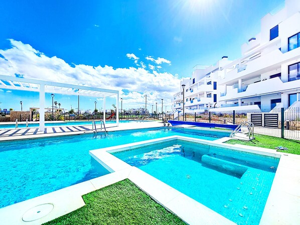 Apartment, south west balcony with pool view