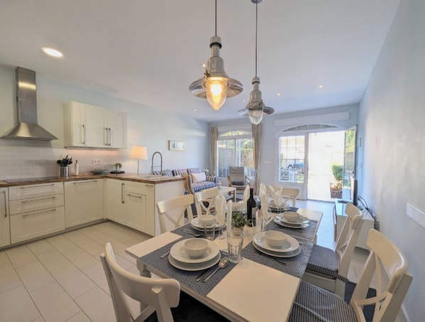 Loma-asunto, jossa on keittiö ja patio