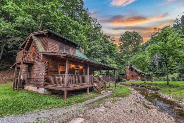 arrive, you'll be captivated by the picturesque creek flowing gently in front