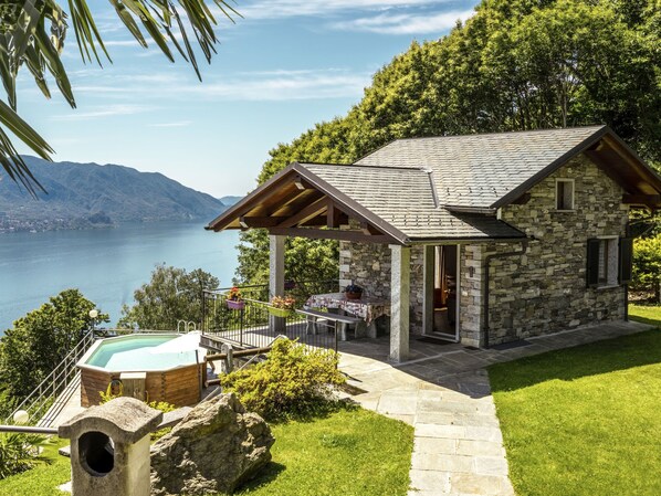 Kaunis yhden perheen talo "Lo Scoiattolo", 600 m merenp. yläp.. 700 m keskustasta Viggiona, 3 km keskustasta Cannero Riviera, rinteessä, 3 km järven rannalta, umpikujan varrella. Yksityiskäytössä: tontti (aidattu), terassoitu piha/puutarha, uima-allas (pystytetty maanpäälle) (6 x 4 m, syvyys 120, käytössä kausiluontoisesti: 16.Tou. - 10.Lok.). 100 m pitkä huonokuntoinen ajotie talolta. Portaat (10 askelmaa) talolle. Pysäköintipaikka tontilla. Kauppa 600 m, supermarket 4 km, ravintola 2 km, baari 2 km, bussipysäkki 4 km, pikkukiviranta 4 km. Golfkenttä (18 reikää) 25 km. Lähettyvillä nähtävyyksiä: Locarno 28 km, Verbania 20 km. Huomioitavaa: auto tarpeellinen.