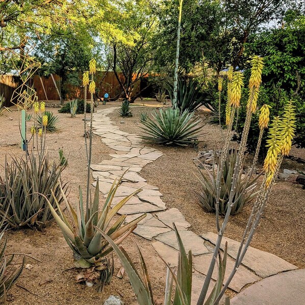 I’m from Tucson and return at least once a year. During our trips we host a gathering for old Arizona friends. This is the second time Claire’s home has been available and everyone was thrilled to return. The house and yard are beautifully designed without seeming stuffy. The photos are accurate but don’t convey how warm and welcoming it is. The kitchen has everything, the landscaping has a calming effect. The house is on a quiet street in a quiet, walkable neighborhood, yet a ten minute walk to a Trader Joe’s and a grocery and a decent breakfast place. We hope to return to this special home.