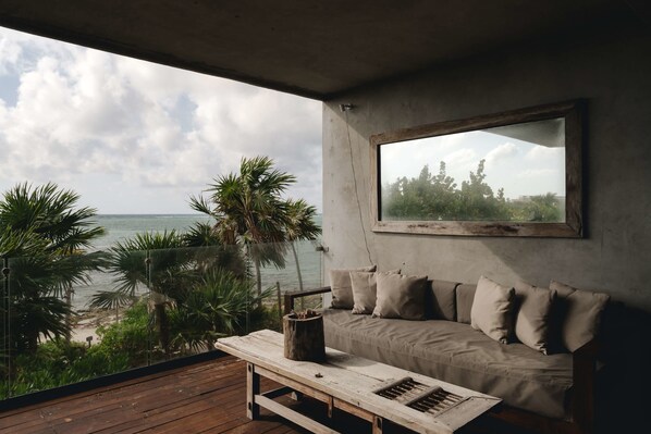 Wake up to ocean views in this stylish 3-bedroom apartment located in a secure oceanfront condo. Each room has its own bathroom, and the apartment features a private terrace with sunbeds, perfect for relaxing in the Caribbean breeze. With 24/7 security, modern design, and easy access to the beach, it’s an ideal choice for families or small groups. Also, our Guest Experience Team is here to help with anything—from local tips to planning special moments.
