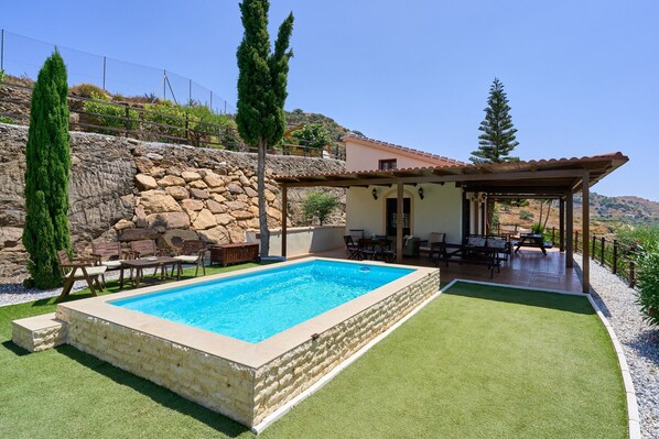 Children are not allowed and vehicles are not permitted inside the premises. Bottled water is provided. Parties and events are not allowed. The maximum capacity is 8 people and only registered guests are permitted. Please note that there may be government regulations regarding water usage during your stay, which may affect the use of the pool, garden irrigation, or limit tap water usage.