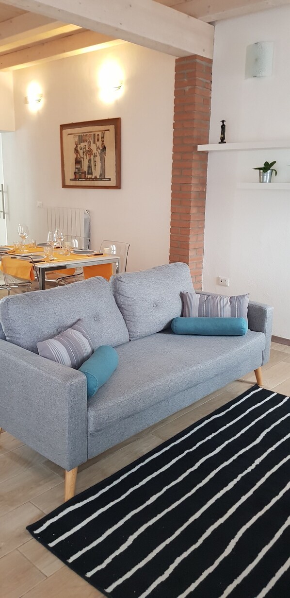 House with independent entrance and car parking on private courtyard, on the ground floor we find the entrance, the living room with the kitchenette (in one room), the dressing room and the full bathroom, a small corridor then leads to the internal courtyard where there is an umbrella, a table and 4 chairs to dine in the evening by candlelight or have breakfast in the morning,