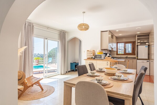 Located in Vidreres, this holiday home offers everything you need for a comfortable stay. The 100 m² property features a living room, kitchen, 3 air-conditioned bedrooms, and 2 bathrooms, accommodating up to six guests. Amenities include Wi-Fi, TV, and a washing machine. For your entertainment, there is a ping-pong table. A high chair is also available. Please note that air conditioning and towels are not provided. This rental features a private pool, garden, open and covered terraces, and a barbecue.
