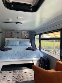 We could not have picked a more perfect place to relax in for our stay. The property is tranquil and private, a perfect location nestled in the valley, and we spent many hours enjoying the view and watching the wildlife while relaxing on the deck. The bus itself is so cleverly converted to give both a spacious and cozy feel, and the attention to detail in décor and design give it a touch of luxury too.The bed was incredibly comfortable, lovely linen and soft pillows. The reclining sofa was great after a day of local walks at the beach and lighthouse, a must do for the incredible views! The kitchen is well appointed with all you could need and a BBQ is on the deck too. The shower was hot and powerful and the natural toiletries were a delightful touch along with thick fluffy towels. Wifi, tv and faux fireplace had all the feels of a well appointed hotel suite and the whole place was spotless inside and out. Our hosts were so welcoming and friendly, they did everything they could to help make our stay comfortable and memorable. We cannot recommend this place highly enough and will definitely be back.