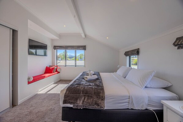 Escape to this spacious Wanaka holiday home, ideal for families or friends with 5 bedrooms & 4 bathrooms accommodating up to 10 guests. Enjoy stunning mountain views whilst being located only minutes from the lakefront, shopping & restaurants. Seamless indoor-outdoor flow with BBQ & backyard for everyone to relax. Indulge a soak in the bath with luxurious amenities, cozy winter nights by the log fire, fully equipped kitchen, two living spaces and more. The perfect Wanaka getaway!