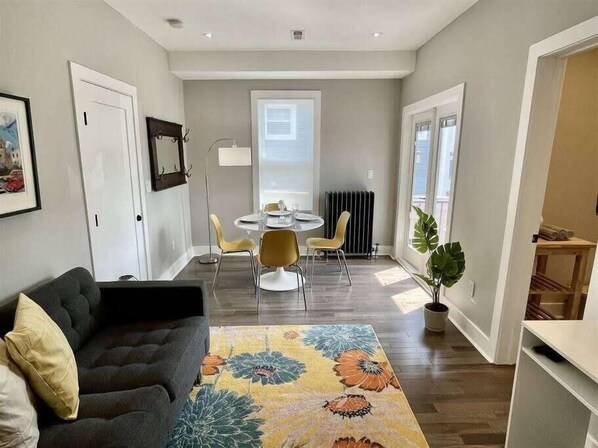Cute spot with everything you need! Perfect place for a long weekend. Close to restaurants and a short walk to the Metro. Eco-responsible practices although some difficulty accessing the app/website to control the heat. A space heater was handy in a pinch. Having a microwave would have been a bit less fussy for reheating food. We would stay again!