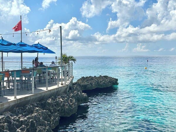 There are 5 oceanfront units, which are a 1-minute walk to beautiful West Bay Beach, a 5 - 7 minute walk (1/2 mile), or a 2-minute car ride to Seven Mile Beach and wonderful Cemetery Beach.