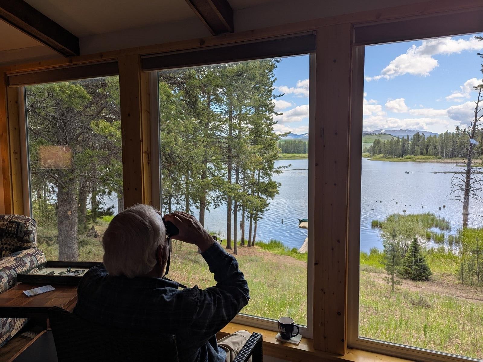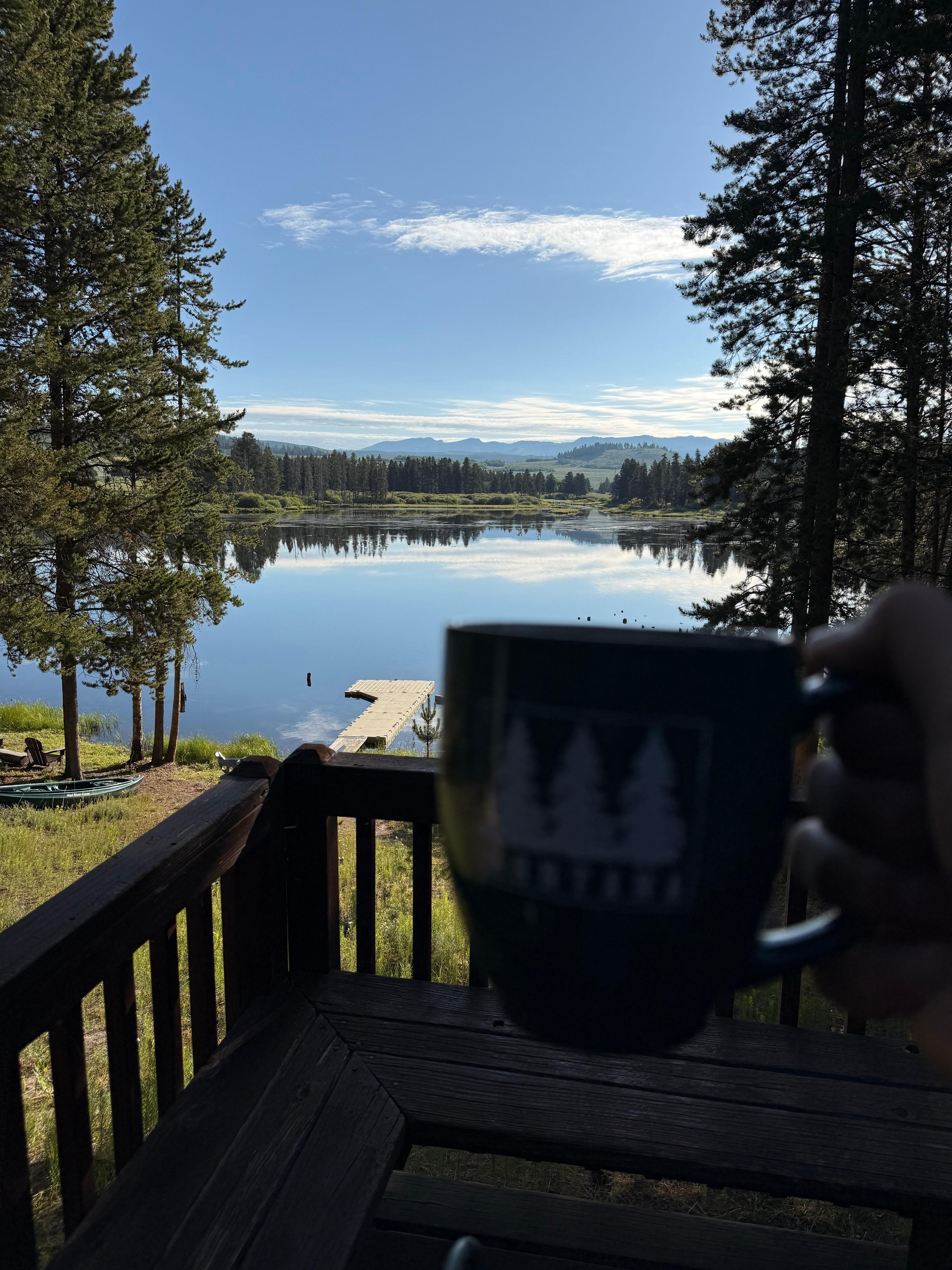 White Peak -mökki tarjoaa joitain parhaista ankan, hanhien ja kalasääsien katselusta, jonka voitte kuvitella. Näkymääsi kehystävät maalaismaiset lodge-nappamännät ja mahtavat Yellowstone Park -vuoret. Todella viehättävä näkymä kuin mikään muu.