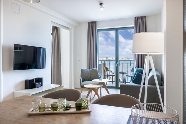 Modernes Apartment mit Saunanutzung, Balkon und Blick in den Hafen von Wismar