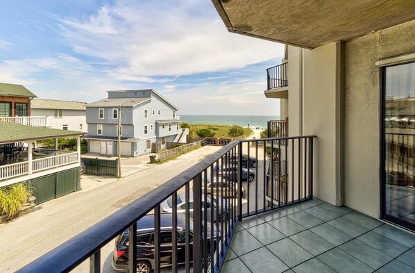Seagull Suite 205 is located on the second floor in the middle of the building. The balcony offers unobstructed ocean views overlooking Stone St.