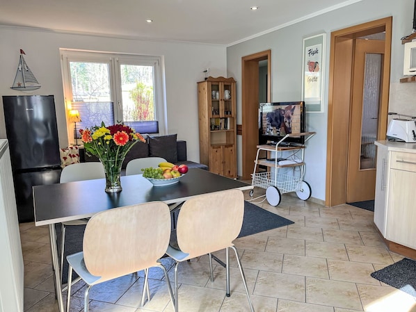 Loma-asunto, jossa on keittiö ja takka
