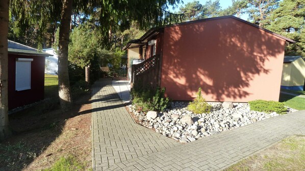 Tervetuloa tervetulleeksi loma-puistoon "Ferienpark Kiefernweg" Zinnowitzissa Usedomilla! Lepo ja rentoutuminen löytyvät kauniisti kalustetusta bungalowistamme. Bungalow on noin 800 metrin päässä rannasta. Rannalle pääsee vastapäätä sijaitsevalta leirintäalueelta, jossa saat tuoreita leipiä ja tavaroita päivittäisiin tarpeisiin aamulla. Monet kaupat, asema Zinnowitz, Bernsteintherme ja muut vapaa-ajan aktiviteetit ovat kävelyetäisyydellä. Lomapuistossa on pieni leikkipaikka ja pingispöytä. Myös yhteisöllinen pyykinpesu- ja kuivaushuone, jossa on pesukone (käytettävissä pesu-tuotemerkki = 2 tuntia 2,50 €). Lomanviettopaikka kutsuu sinut hyvään sijaintiin metsä- tai pyöräilypaikalle. Koe Usedom kauniissa Itämeren Zinnowitzissa.