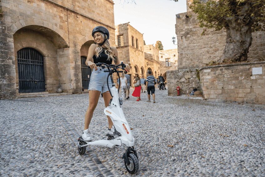 Tutustu Rodoksen uuteen ja vanhaan kaupunkiin Trikke-ajelulla, joka on kolmipyöräinen sähköskootteri, ja tee yksityisestä kiertoajelustasi hauska. Trikke tarjoaa ihanteellisen tavan kiertää Rodosta lyhyemmässä ajassa, sillä sen avulla voit ohittaa liikenteen ja liukua vaivattomasti nähtävyyksien ympäri. Tee varaus verkossa ja seuraa sitten opastasi reittiä, joka on luotu huolellisesti esittelemään kaupungin nähtävyyksiä.