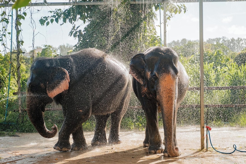 13:45 - 14:45: Kuori norsujen iho mudalla ja kylpe niiden kanssa suuressa luonnonjärvessä. Pese lopuksi lika ja muta pois virkistävällä suihkulla.