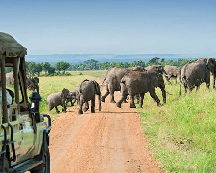 Tässä vaihtoehdossa aloitat safarin rannikolta, jossa voit valita Mombasan, Malindin, Watamun tai Dianin avokattoisella nelipyöräisellä safaribussilla.