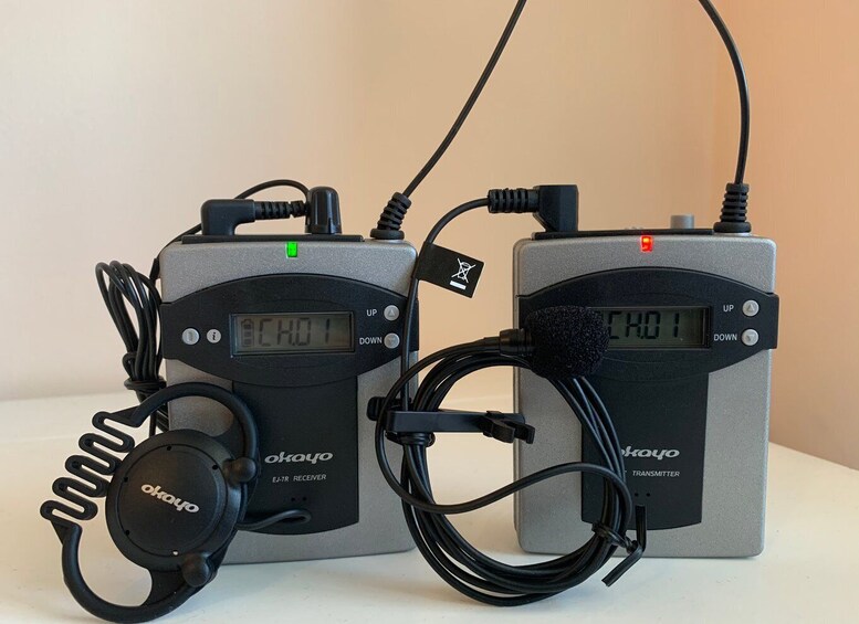 Äänilaite, jolla voit kuulla live-oppaasi myös etäältä.