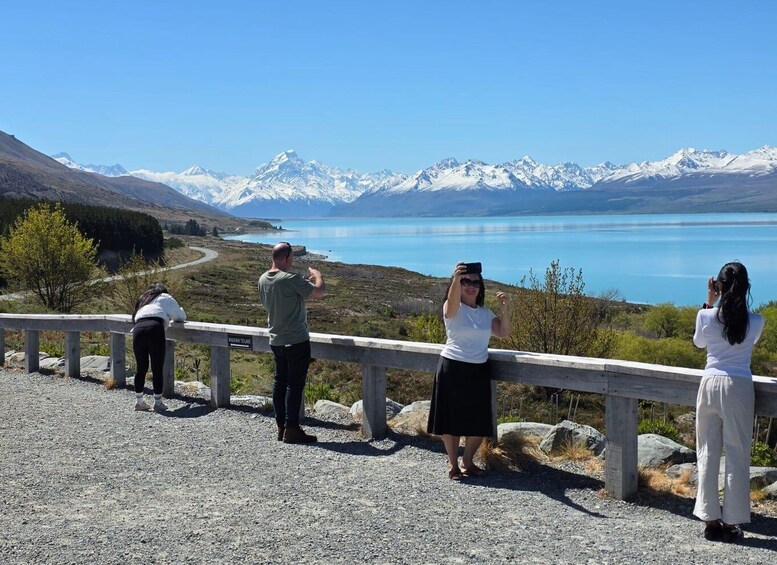 Lake Pukaki - Käännymme länteen ja alamme saapua Aorakin kansallispuistoon, ja Lake Pukaki alkaa näkyä edessämme. Ota upeita valokuvia, joissa Cook-vuori kohoaa taustalla, ja tutustu jäätikön voimiin, jotka ovat muokanneet tätä uskomatonta maisemaa.