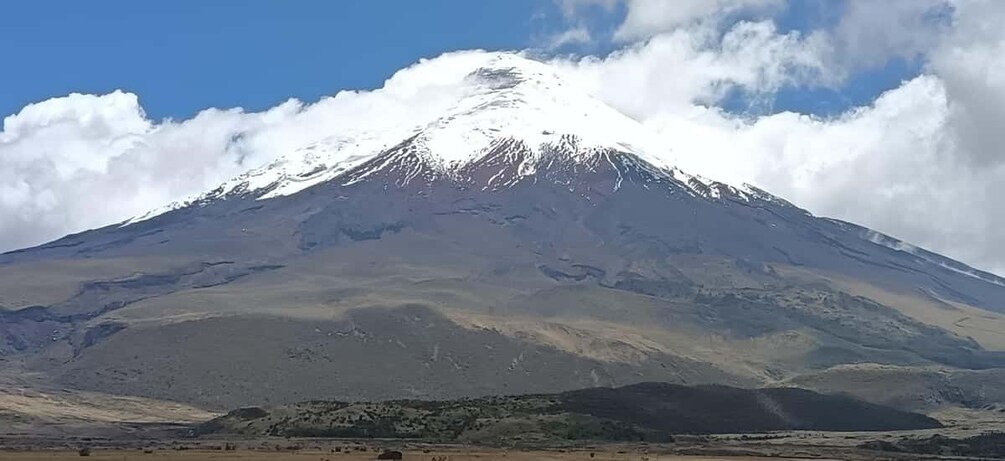 ✨ Pysäkki 2 - Cotopaxi-tulivuoren juurella: Cotopaxi-tulivuoren juurelle, jossa osallistumme perinteiseen Andien tanssiin alkuperäisväestön musiikin säestämänä. Mikä on Cotopaxi? Cotopaxi on yksi maailman korkeimmista aktiivisista tulivuorista. Sen nimi tarkoittaa “Kuun kaulaa”, ja alkuperäisyhteisöt kunnioittavat sitä Andien pyhänä suojelijana. Cotopaxi on aktiivinen kerrostulivuori, joka kohoaa 5 897 metriä merenpinnan yläpuolelle. Kansallispuisto: Cotopaxi on osa Cotopaxin kansallispuistoa, joka kattaa laajan alueen tulivuoren ympärillä. Puisto on suojelualue, joka tunnetaan monipuolisista ekosysteemeistään.