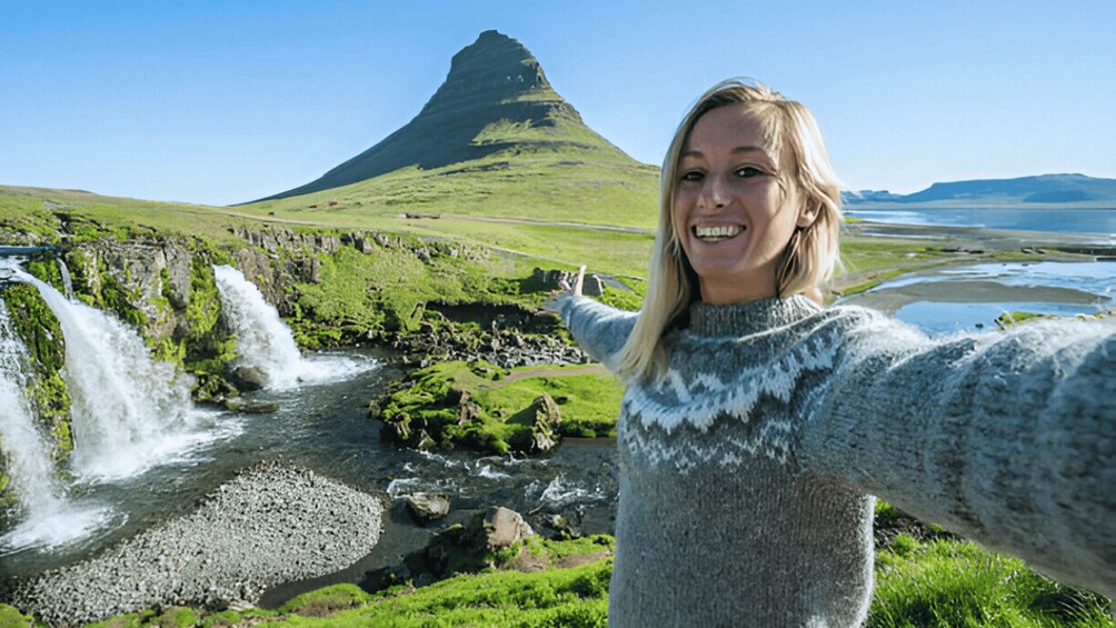 Seuraavaksi vierailemme kuuluisalla Kirkjufell-vuorella, Islannin kuvatuimmalla vuorella! Näet sen ainutlaatuisen muodon ja kauniit Kirkjufellsfossin vesiputoukset aivan sen edessä. Se on täydellinen paikka valokuvien ottamiseen.