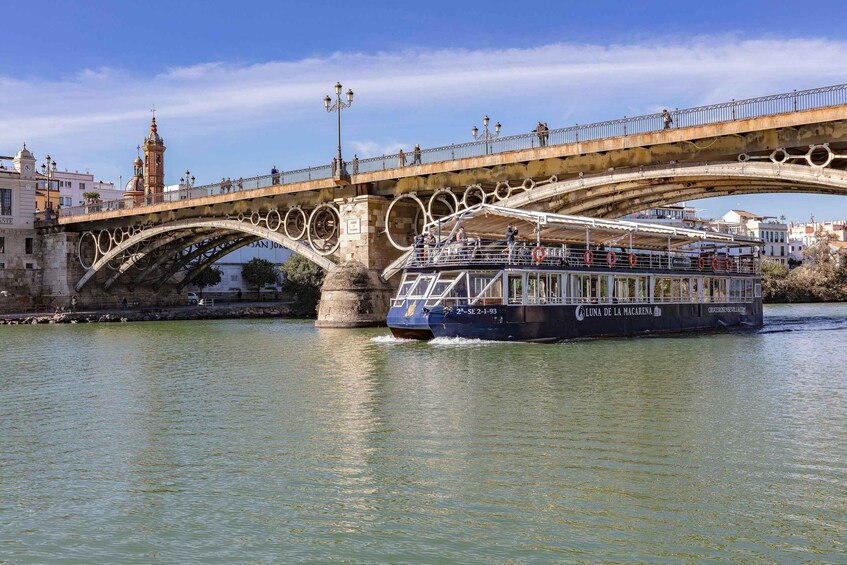 Tarkista aikataulu osoitteesta https://www.busturistico.com/en/tours/#horariosTutustu Guadalquivirin historiaan, sen hämmästyttäviin siltoihin ja kaupalliseen satamaan 1 tunnin jokimatkalla.