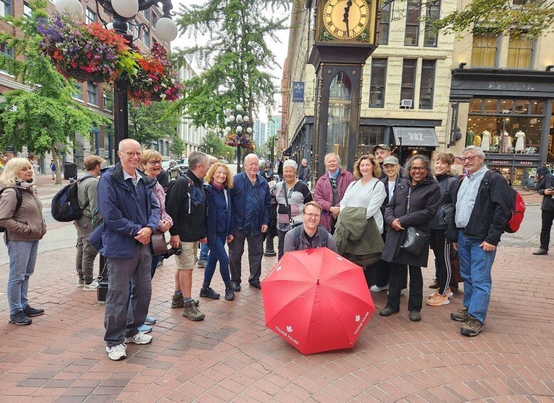 Sen jälkeen kävelemme Gastownin syvyyksiin katsomaan eniten kuvattua kohdetta, Gastownin höyrykelloa. Tämä höyrykäyttöinen kello ihastuttaa yleisöä juuri sopivasti, kun New Westminsterin kellonsoitto soittaa tunnistettavaa sävelmää. Jatkamme matkaa Waterfront-asemalle, jossa sinulla on mahdollisuus kysyä kaikki mieltä askarruttavat kysymykset siitä, miten pääset parhaiten liikkumaan Vancouverissa kierroksen jälkeen.