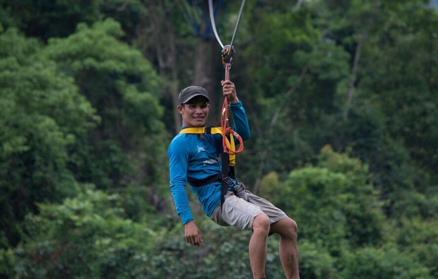 Nauti kokopäiväretkestä, johon sisältyy hauska köysirataelämys vehreän viidakon halki.